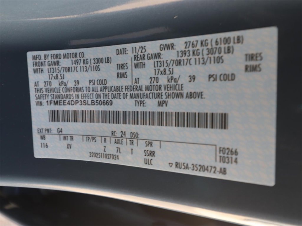 • VIN # 1FMEE4DP3SLB50669