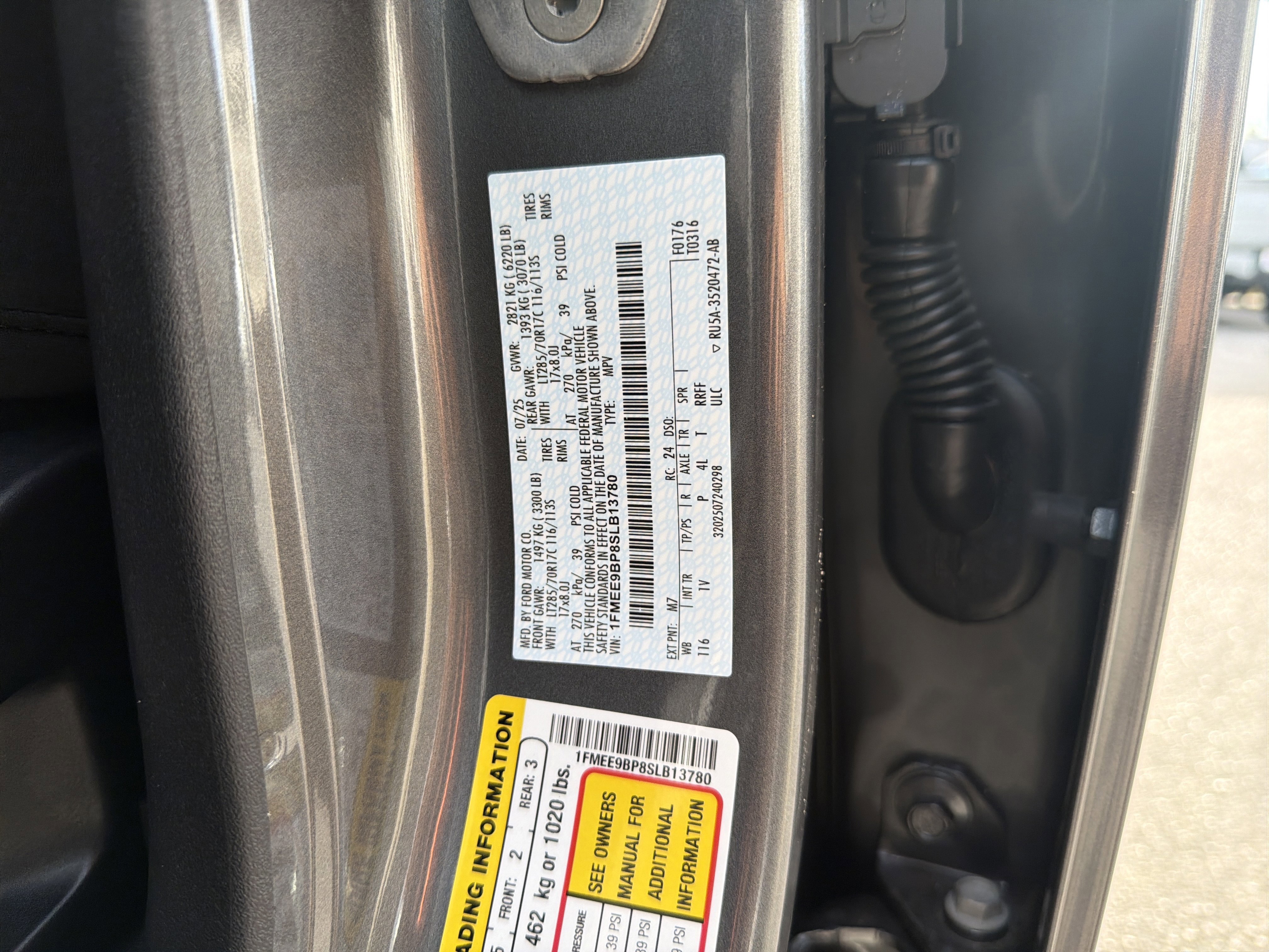 • VIN # 1FMEE9BP8SLB13780