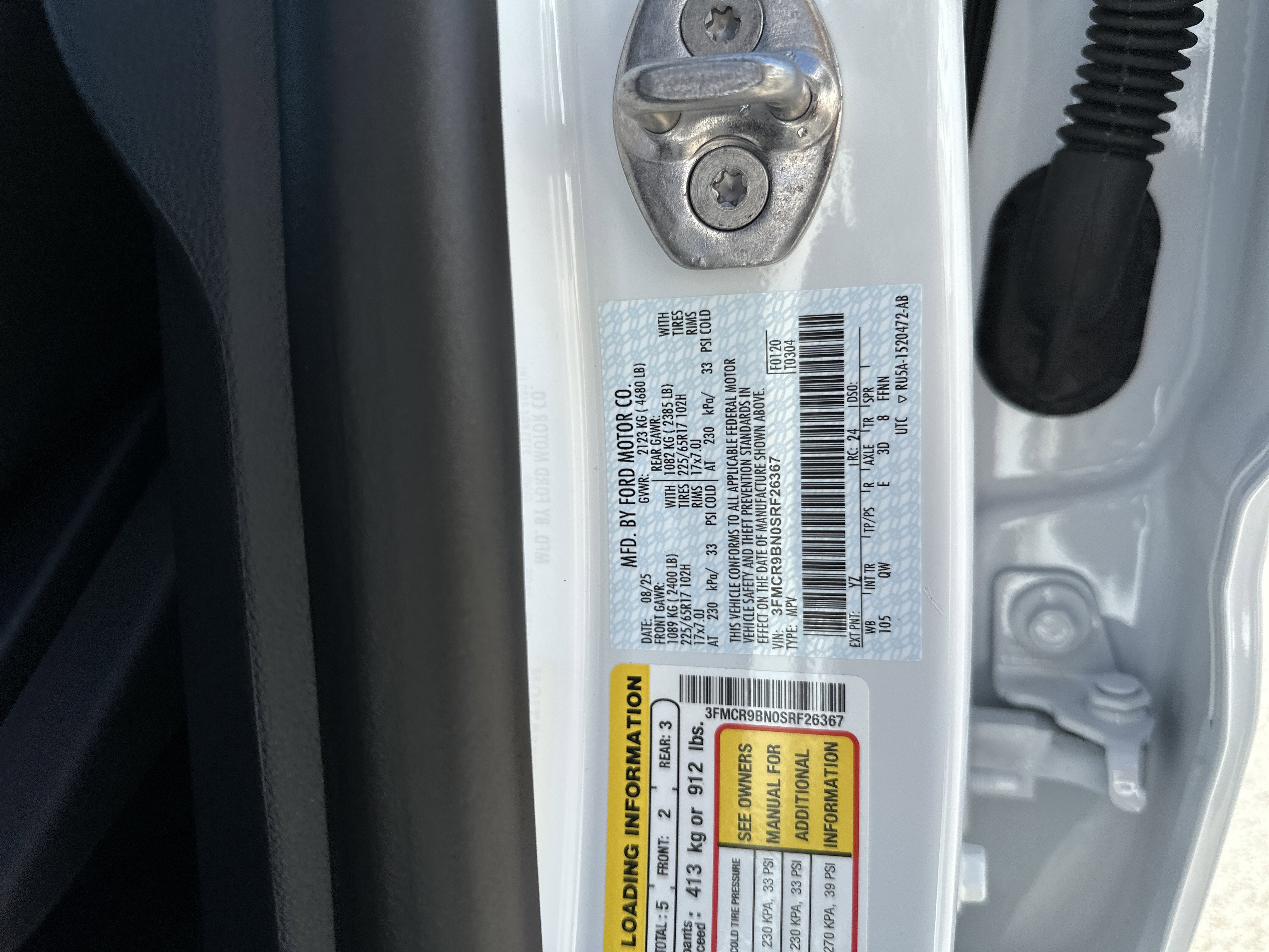 • VIN # 3FMCR9BN0SRF26367