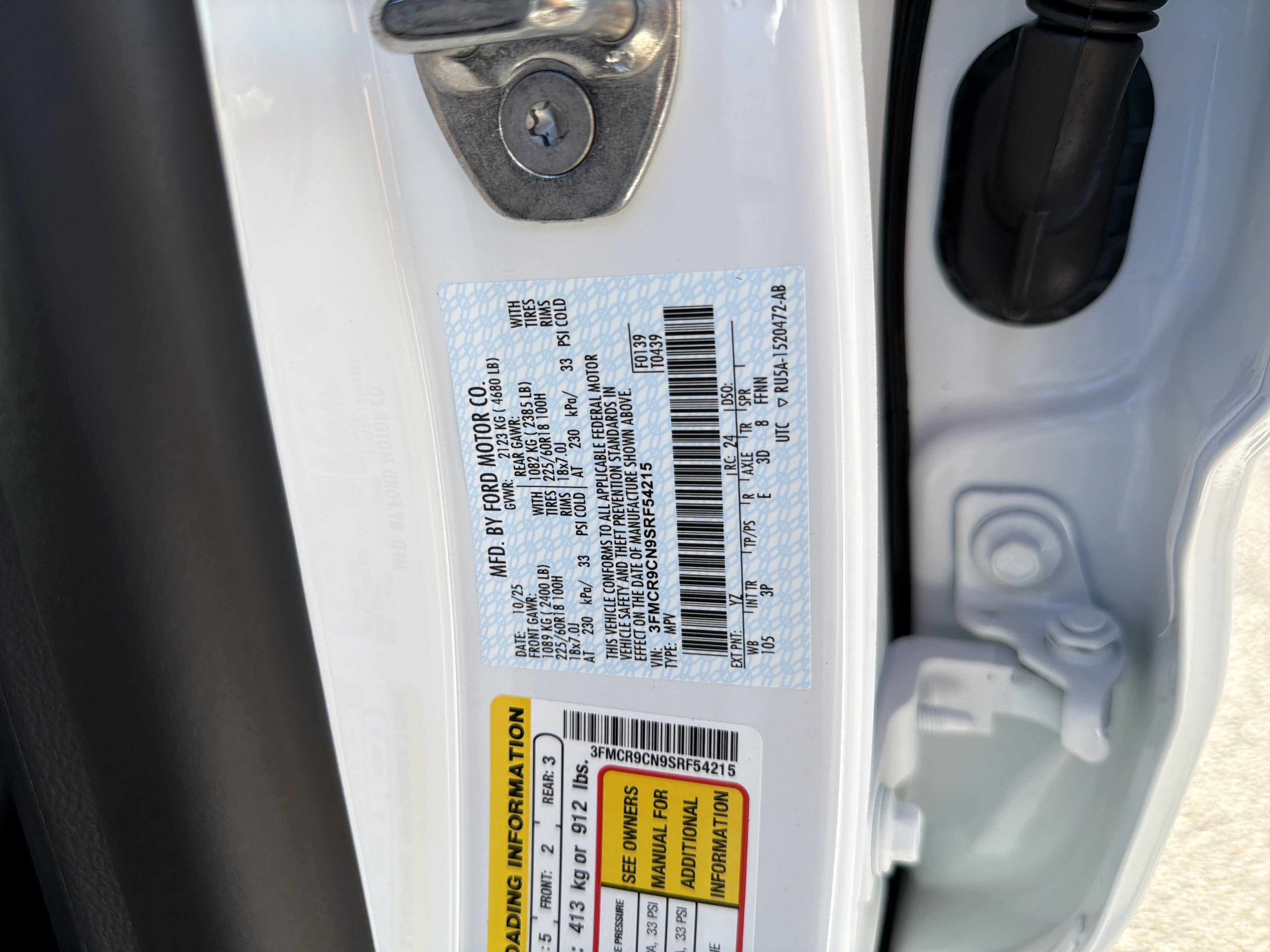 • VIN # 3FMCR9CN9SRF54215