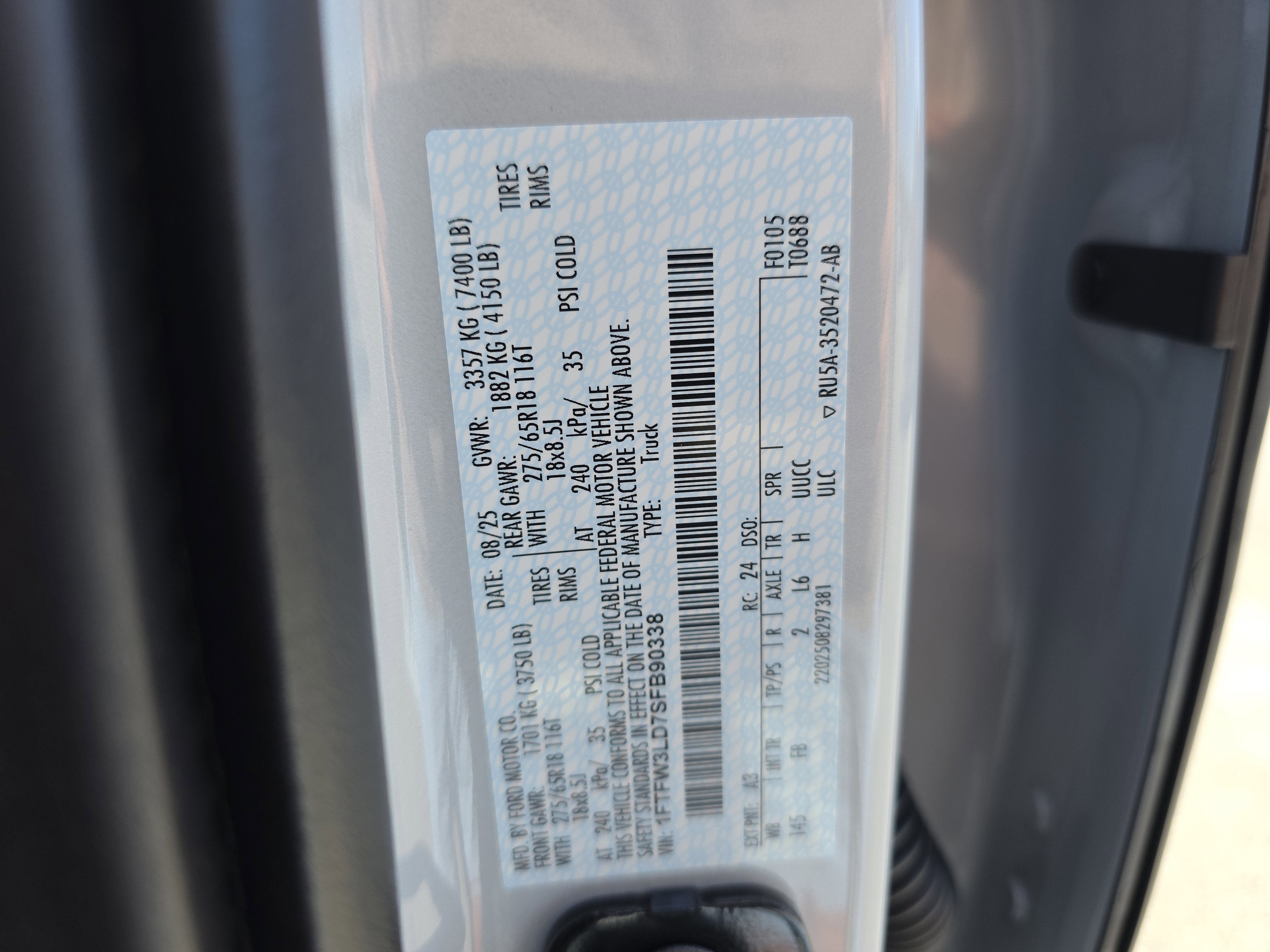 • VIN # 1FTFW3LD7SFB90338