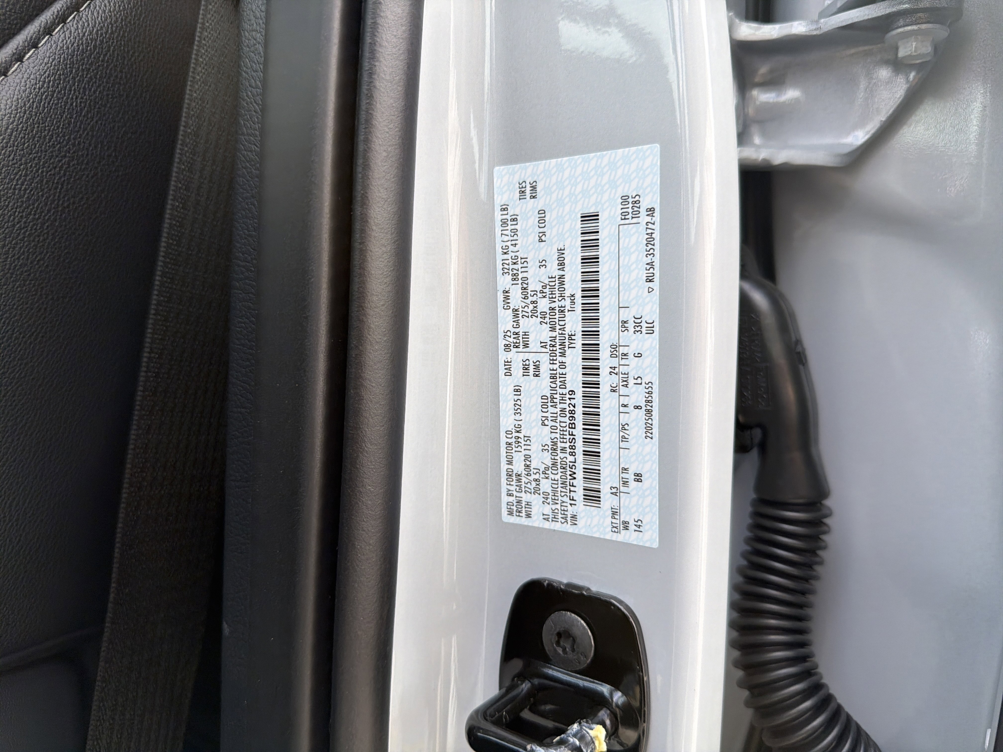 • VIN # 1FTFW5L88SFB98219