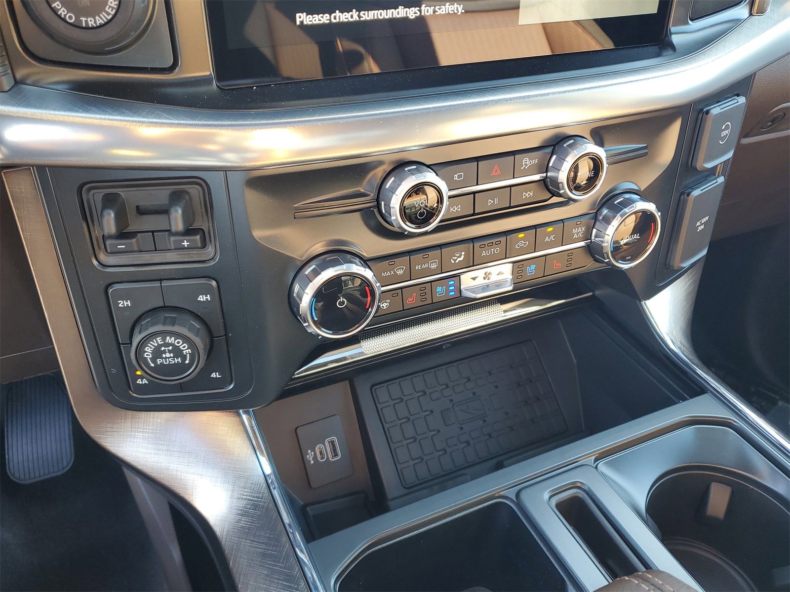 Dealer Discount of $6,136 off MSRP F-150 King Ranch, 4WD, 4x4 FX4 Off-Road Bodyside Decal, Equipment Group 601A High, FX4 Off-Road Package, GVWR: 7,400 lbs Payload Package, Hill Descent Control, Monotube Rear Shocks, Off-Road Tuned Front Shock Absorbers, Rock Crawl Mode, 14 Speakers, 4-Wheel Disc Brakes, ABS brakes, Adjustable pedals, Air Conditioning, Alloy wheels, AM/FM radio: SiriusXM with 360L, Auto High-beam Headlights, Auto tilt-away steering wheel, Auto-dimming door mirrors, Auto-dimming Rear-View mirror, Automatic temperature control, Brake assist, Chrome wheels, Compass, Delay-off headlights, Driver door bin, Driver vanity mirror, Dual front impact airbags, Dual front side impact airbags, Electronic Stability Control, Emergency communication system: SYNC 4 911 Assist, Front anti-roll bar, Front Bucket Seats, Front Center Armrest, Front dual zone A/C, Front fog lights, Front License Plate Bracket, Front reading lights, Front wheel independent suspension, Fully automatic headlights, Garage door transmitter, Genuine wood dashboard insert, Heads-Up Display, Heated door mirrors, Heated front seats, Heated rear seats, Heated steering wheel, Illuminated entry, King Ranch Multicontour Leather Bucket Seats, Leather steering wheel, Low tire pressure warning, Memory seat, Navigation system: Connected Navigation, Occupant sensing airbag, Outside temperature display, Overhead airbag, Overhead console, Panic alarm, Passenger door bin, Passenger vanity mirror, Pedal memory, Power door mirrors, Power driver seat, Power moonroof, Power passenger seat, Power steering, Power windows, Radio data system, Radio: B&O Unleashed Sound System by Bang & Olufsen, Rain sensing wipers, Rear reading lights, Rear seat center armrest, Rear step bumper, Rear window defroster, Remote keyless entry, Security system, Speed control, Split folding rear seat, Steering wheel memory, Steering wheel mounted audio controls, SYNC 4 w/Enhanced Voice Recognition, Tachometer, Telescoping steering wheel, Tilt steering wheel, Traction control, Trip computer, Turn signal indicator mirrors, Variably intermittent wipers, Ventilated front seats, Voltmeter, Wheel Well Liner, Wheels: 20 Chrome-Like PVD, F-150 King Ranch, 4WD, 4x4 FX4 Off-Road Bodyside Decal, Equipment Group 601A High, FX4 Off-Road Package, GVWR: 7,400 lbs Payload Package, Hill Descent Control, Monotube Rear Shocks, Off-Road Tuned Front Shock Absorbers, Rock Crawl Mode.