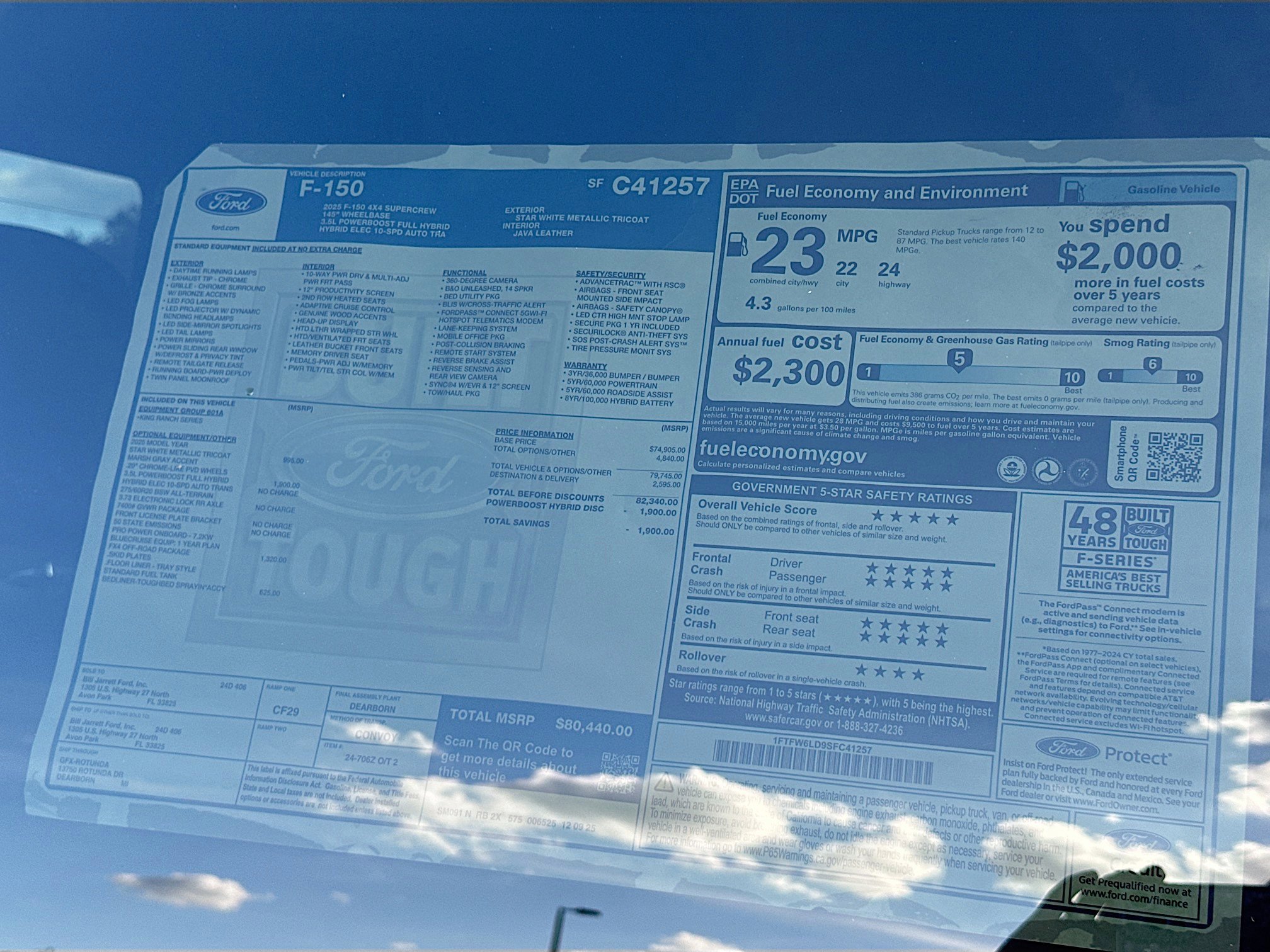 Star White Metallic Tri-Coat 2025 Ford F-150 King Ranch 4WD 10-Speed Automatic 3.5L PowerBoost Full-Hybrid V6 3.5L PowerBoost Full-Hybrid V6, 4WD.