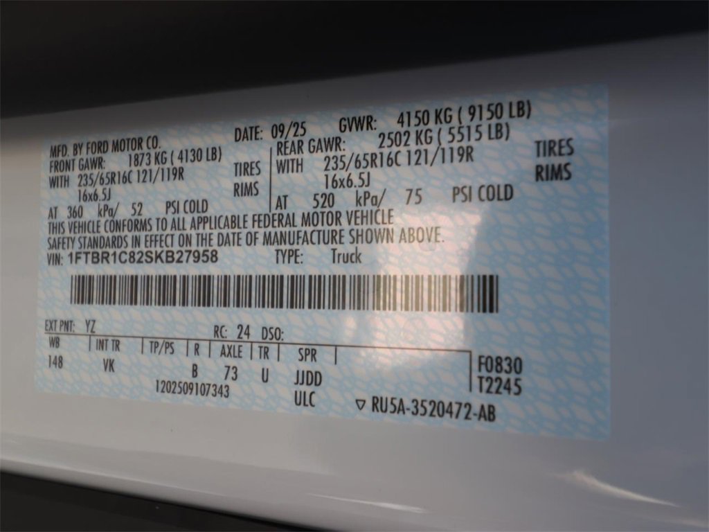 2 Additional Keys (4 Total), Electronic Air Temperature Control, Front & Rear Vinyl Floor Covering, Full Rear Compartment Lighting, High Resolution Digital Camera, Load Area Protection Package, Order Code 101A, Radio: AM/FM Stereo w/SYNC 4, Reverse sensing sys..