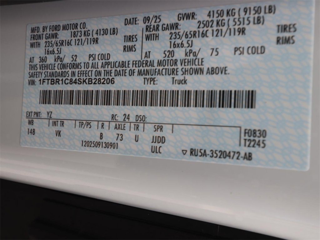 2 Additional Keys (4 Total), Electronic Air Temperature Control, Front & Rear Vinyl Floor Covering, Full Rear Compartment Lighting, High Resolution Digital Camera, Load Area Protection Package, Order Code 101A, Radio: AM/FM Stereo w/SYNC 4, Reverse sensing sys..