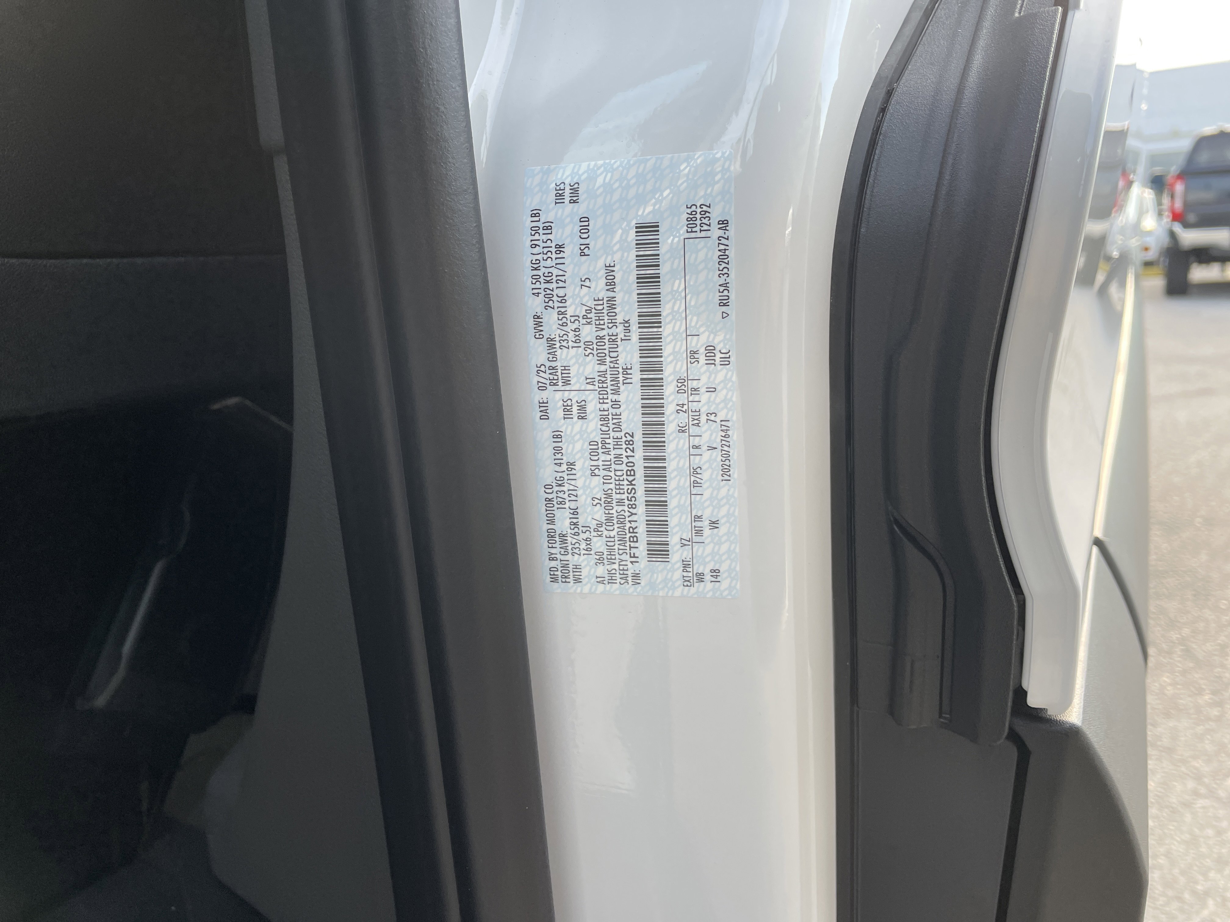• VIN # 1FTBR1Y85SKB01282