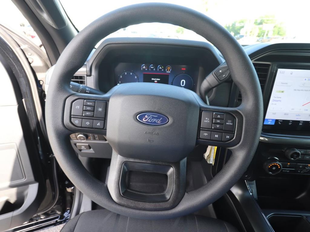 This F-150 STX offers impressive fuel efficiency, with an EPA-estimated 20 mpg in the city and 26 mpg on the highway. The sleek black exterior and bold styling ensure this truck stands out on the road, while the interior features a wealth of advanced technology and convenience features.