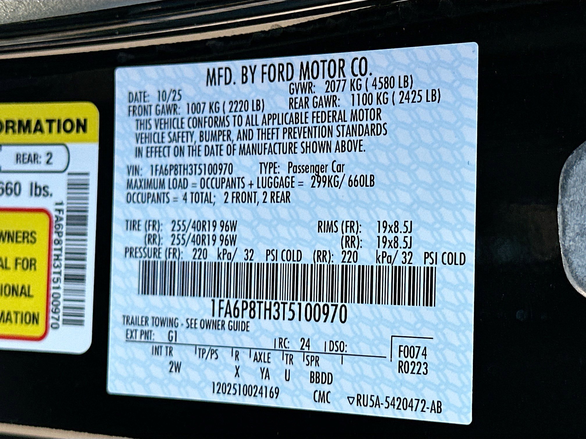 Trunk Rear Cargo Access, Trip Computer, Transmission: 10-Speed Automatic -inc: selectable drive modes, Transmission w/Driver Selectable Mode and Sequential Shift Control, Tires: 235/50ZR18 BSW AS, Tire Specific Low Tire Pressure Warning, SYNC 4 -inc: enhanced voice recognition, information on demand panel, 13.2 LCD capacitive touchscreen w/swipe capability, SYNC 4 AppLink, 911 Assist, wireless Apple CarPlay and Android Auto compatibility, digital owner's manual, conversational voice recognition and 2 smart charging USB ports, Strut Front Suspension w/Coil Springs, Streaming Audio, Speed Sensitive Rain Detecting Variable Intermittent Wipers.
