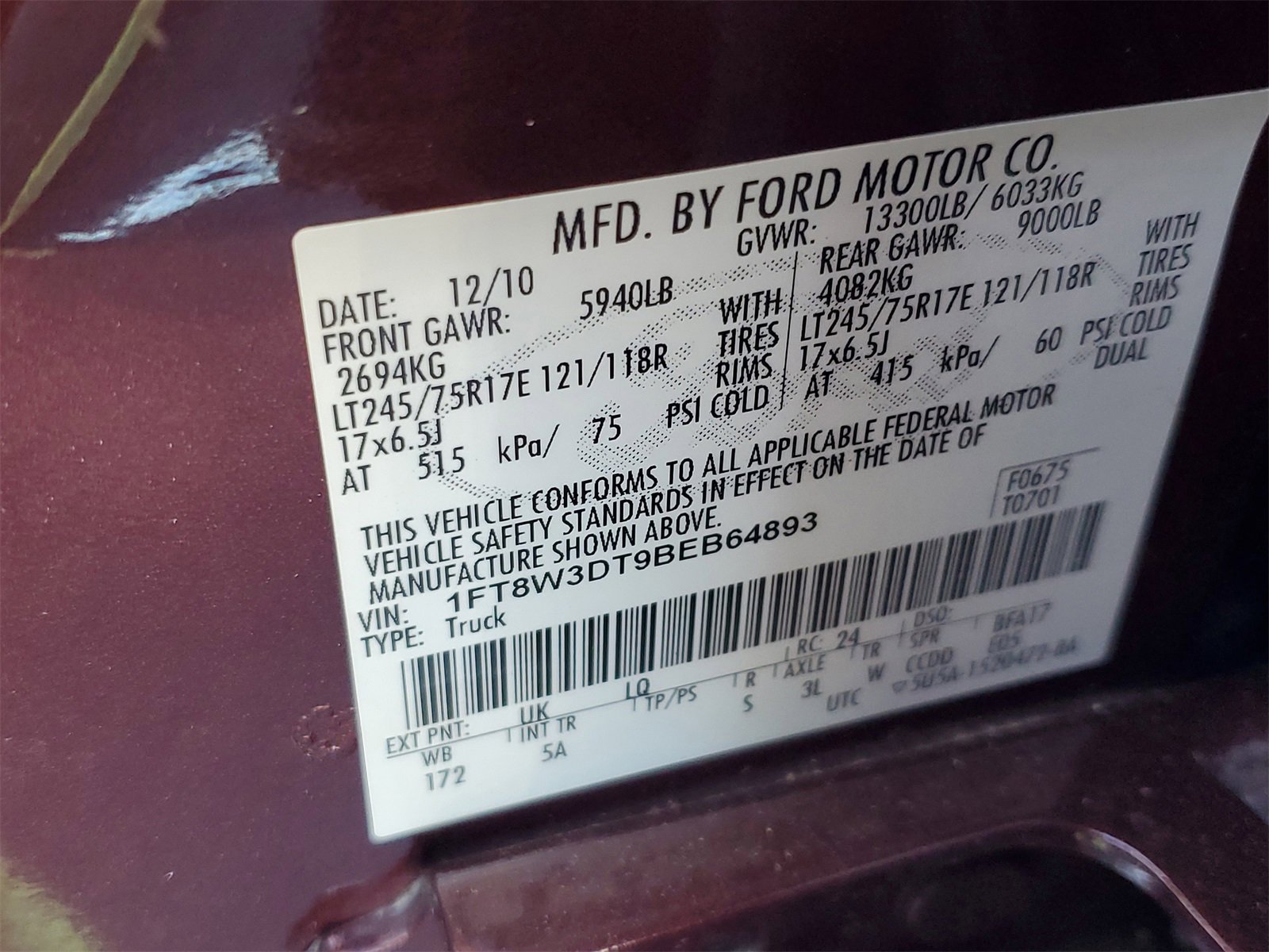 Royal Red 2011 Ford F-350SD Lariat DRW 4WD TorqShift 6-Speed Automatic with Overdrive Power Stroke 6.7L V8 DI 32V OHV Turbodiesel