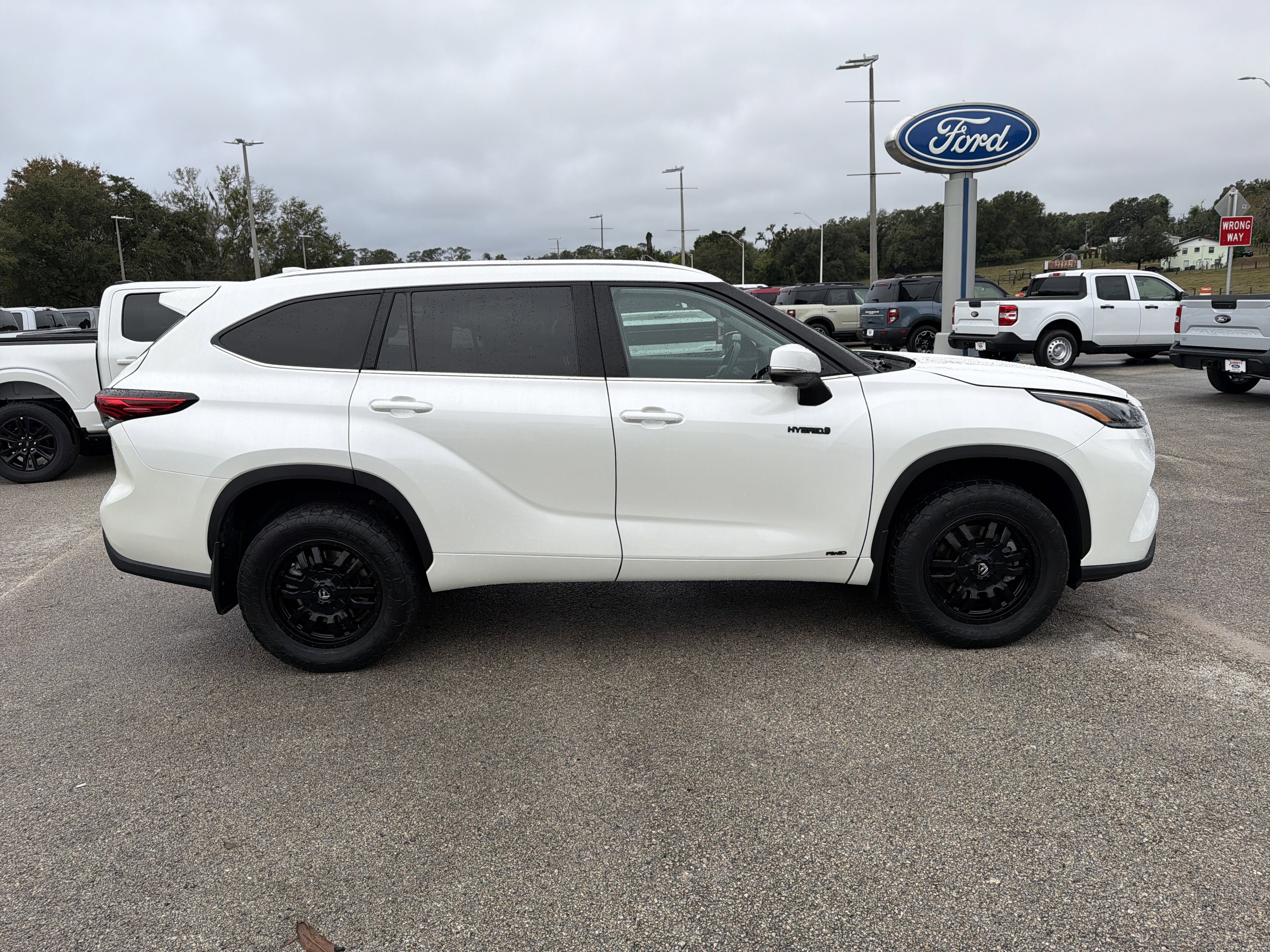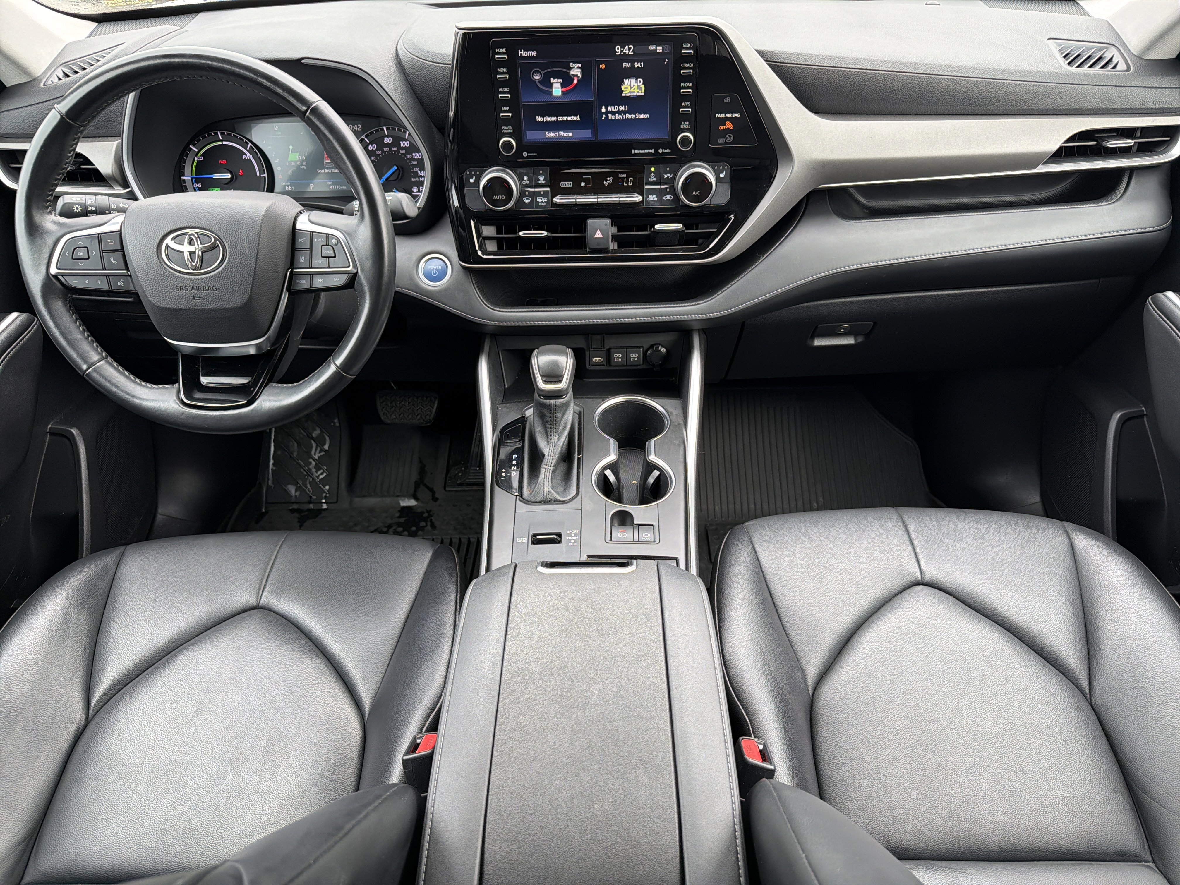 White 2021 Toyota Highlander Hybrid XLE AWD eCVT 2.5L I4 PDI Hybrid DOHC 16V LEV3-SULEV30 186hp 2.5L I4 PDI Hybrid DOHC 16V LEV3-SULEV30 186hp, 3rd row seats: split-bench, 4-Wheel Disc Brakes, 6 Speakers, ABS brakes, Air Conditioning, AM/FM radio: SiriusXM, Apple CarPlay/Android Auto, Auto High-beam Headlights, Auto-dimming Rear-View mirror, Automatic temperature control, Axle Ratio TBD, Brake assist, Bumpers: body-color, Delay-off headlights, Driver door bin, Driver vanity mirror, Dual front impact airbags, Dual front side impact airbags, Electronic Stability Control, Emergency communication system: Safety Connect with 1-year trial, Exterior Parking Camera Rear, Four wheel independent suspension, Front anti-roll bar, Front Bucket Seats, Front Center Armrest, Front dual zone A/C, Front fog lights, Front reading lights, Fully automatic headlights, Garage door transmitter: HomeLink, Heated door mirrors, Heated Front Bucket Seats, Heated front seats, Illuminated entry, Knee airbag, Leather Shift Knob, Low tire pressure warning, Occupant sensing airbag, Outside temperature display, Overhead airbag, Overhead console, Panic alarm, Passenger door bin, Passenger vanity mirror, Power door mirrors, Power driver seat, Power Liftgate, Power moonroof, Power passenger seat, Power steering, Power windows, Radio: Audio Plus (T1 Hi), Rear air conditioning, Rear anti-roll bar, Rear reading lights, Rear window defroster, Rear window wiper, Reclining 3rd row seat, Remote keyless entry, Roof rack: rails only, Security system, SofTex Seat Trim, Speed control, Speed-sensing steering, Split folding rear seat, Spoiler, Steering wheel mounted audio controls, Telescoping steering wheel, Tilt steering wheel, Traction control, Trip computer, Turn signal indicator mirrors, Variably intermittent wipers, Wheels: 18 Machined-Finish Alloy.