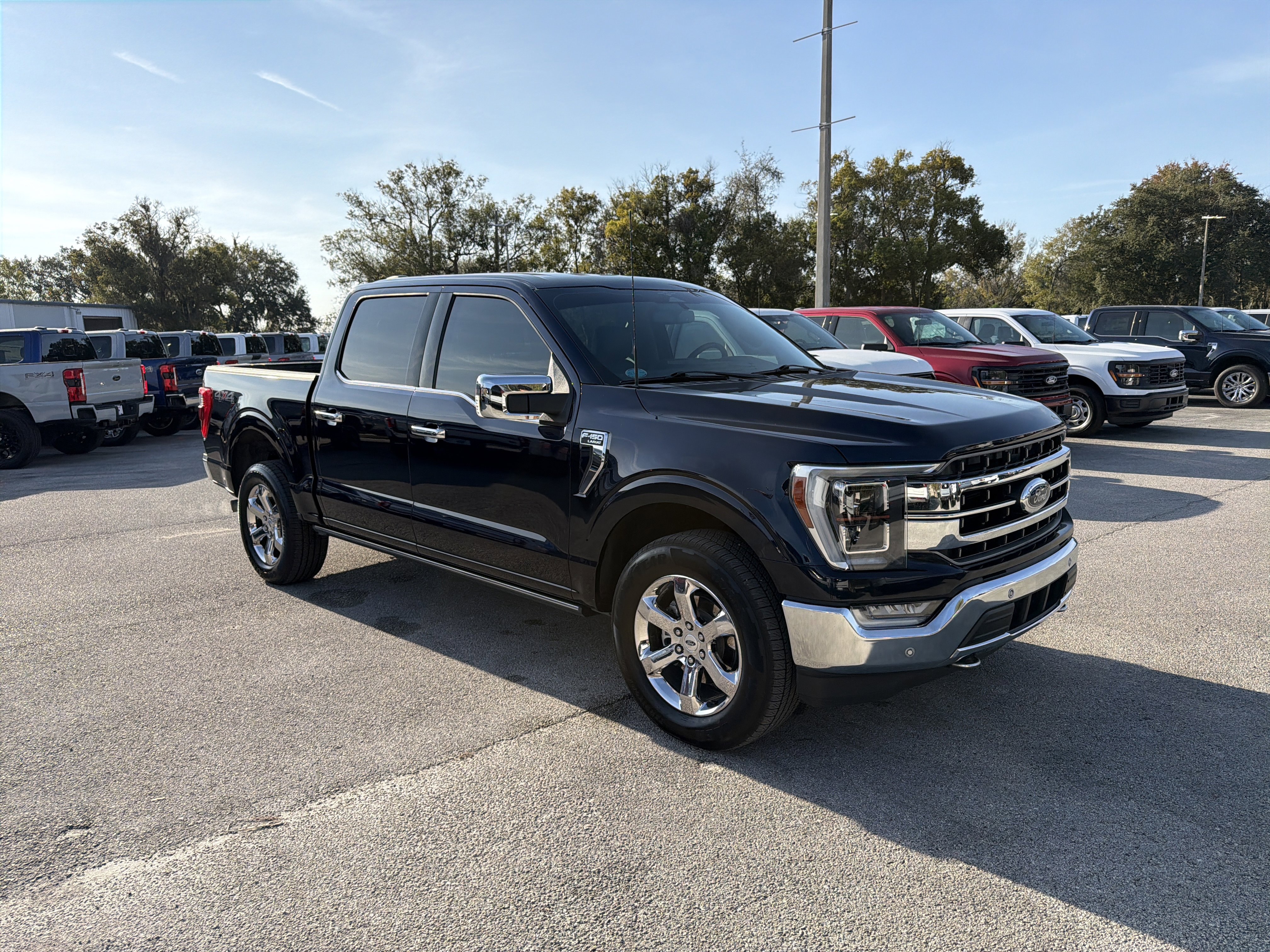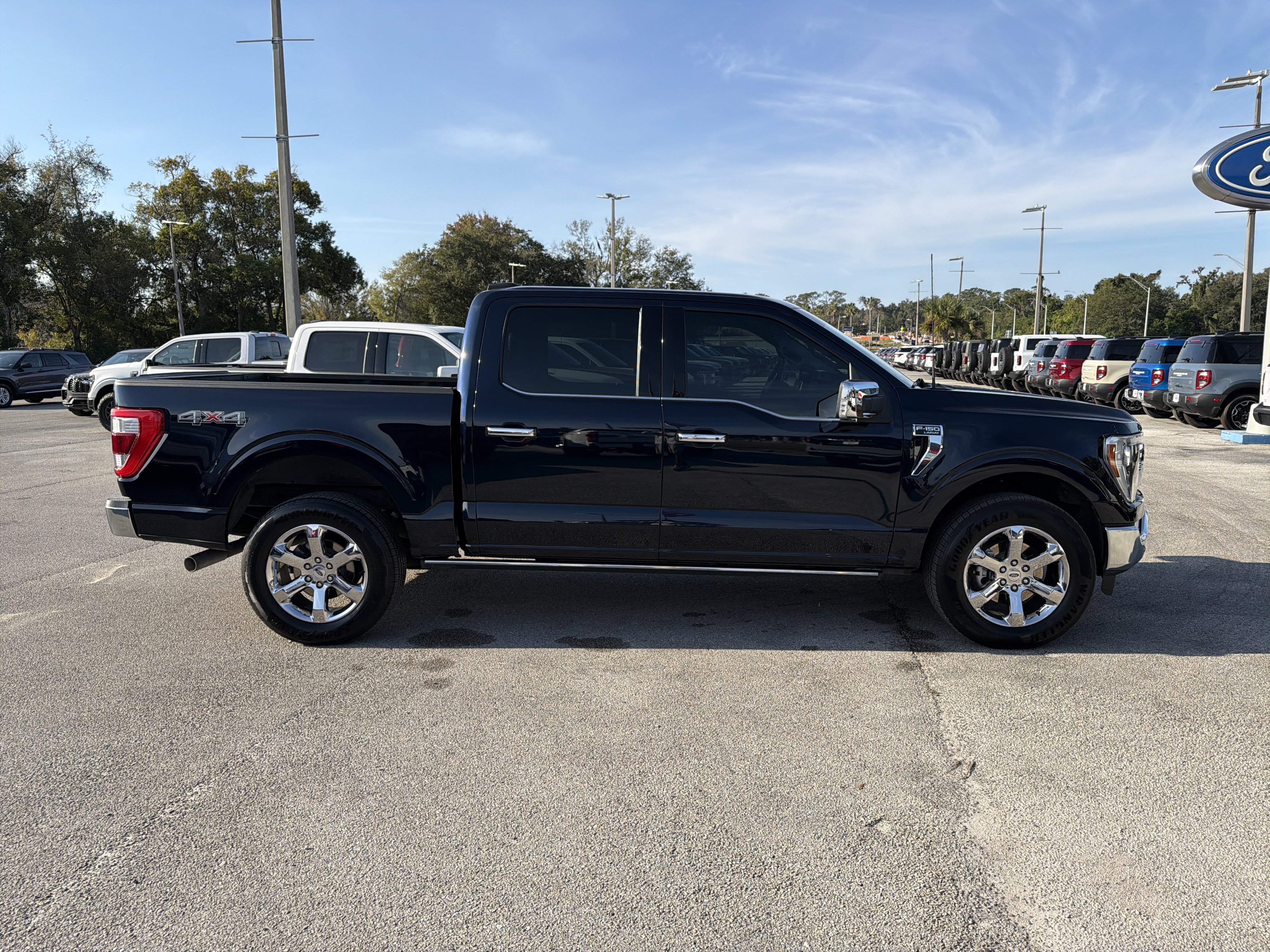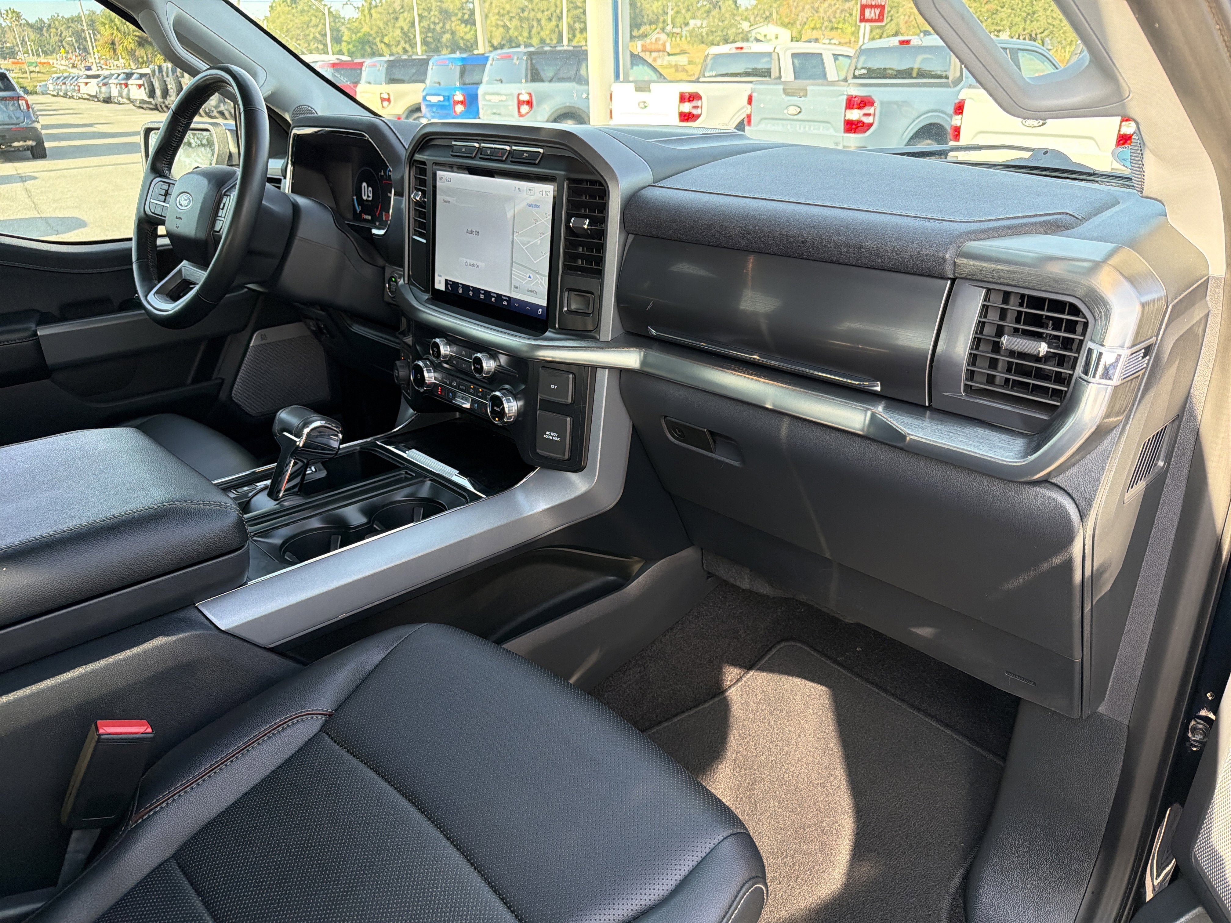 Antimatter Blue Metallic 2023 Ford F-150 Lariat 4WD 10-Speed Automatic 3.5L V6 EcoBoost ALLOY WHEELS, BACK UP CAMERA, BEST PRICE, BEST SELECTION!, BLUETOOTH, 4WD, 2nd Row Heated Seats, 3.31 Axle Ratio, 4-Wheel Disc Brakes, 8 Speakers, ABS brakes, Adjustable pedals, Air Conditioning, AM/FM radio: SiriusXM with 360L, Auto High-beam Headlights, Auto-dimming door mirrors, Auto-dimming Rear-View mirror, Automatic temperature control, Bed Utility Package, BoxLink, Brake assist, Bumpers: chrome, Class IV Trailer Hitch Receiver, Compass, Connected Built-In Navigation, Delay-off headlights, Driver door bin, Driver vanity mirror, Dual front impact airbags, Dual front side impact airbags, Electronic Stability Control, Emergency communication system: SYNC 4 911 Assist, Equipment Group 502A High, Evasive Steering Assist, Extended Range 36 Gallon Fuel Tank, Exterior Parking Camera Rear, Ford Co-Pilot360 Assist 2.0, Front anti-roll bar, Front Bucket Seats, Front Center Armrest, Front dual zone A/C, Front fog lights, Front License Plate Bracket, Front reading lights, Front wheel independent suspension, Fully automatic headlights, Garage door transmitter, Heated door mirrors, Heated front seats, Heated steering wheel, Illuminated entry, Inclination/Intrusion Sensor Removal, Intelligent Adaptive Cruise Control w/Stop & Go, Interior Work Surface, Intersection Assist, Leather-Trimmed Bucket Seats, LED Box Lighting, LED Projector w/Dynamic Bending Headlamps, Low tire pressure warning, Memory seat, Occupant sensing airbag, Outside temperature display, Overhead airbag, Overhead console, Panic alarm, Passenger vanity mirror, Pedal memory, Power door mirrors, Power driver seat, Power passenger seat, Power steering, Power Tailgate, Power Tilt/Telescoping Steering Column w/Memory, Power windows, Power-Deployable Running Boards, Radio data system, Radio: B&O Sound System by Bang & Olufsen, Rain-Sensing Wipers, Rear reading lights, Rear seat center armrest, Rear step bumper, Rear window defroster, Remote keyless entry, Security system, Speed Sign Recognition, Speed-sensing steering, Split folding rear seat, Steering Wheel Heat Removal (DISC), Steering wheel mounted audio controls, SYNC 4 w/Enhanced Voice Recognition, Tachometer, Tailgate Step w/Tailgate Work Surface, Telescoping steering wheel, Tilt steering wheel, Tough Bed Spray-In Bedliner, Traction control, Trip computer, Turn signal indicator mirrors, Variably intermittent wipers, Ventilated front seats, Voltmeter, Wheels: 20 Chrome-Like PVD, Wireless Charging Pad.