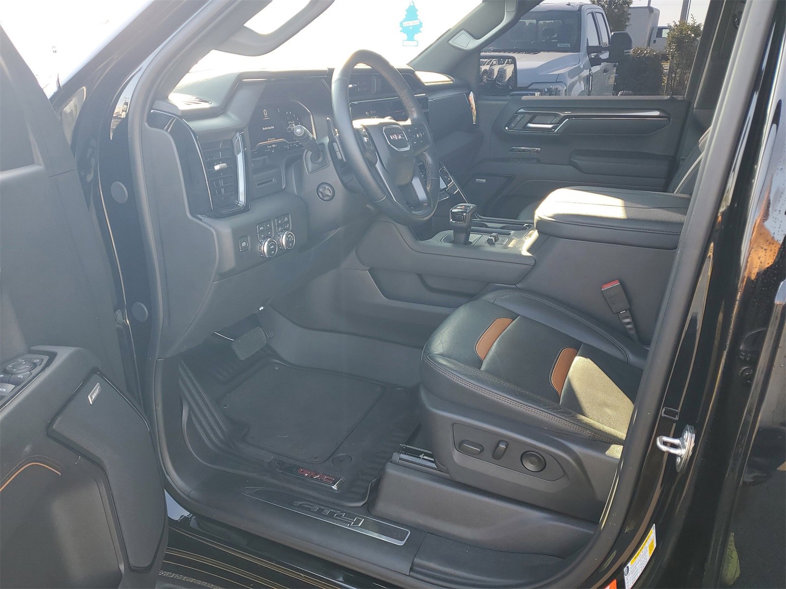 BALANCE OF FACTORY WARRANTY, 10-Speed Automatic, 4WD, Jet Black With Kalahari Accents Leather, 10-Way Power Driver Seat Adjuster w/Lumbar, 10-Way Power Passenger Seat Adjuster w/Lumbar, 120-Volt Bed Mounted Power Outlet, 120-Volt Interior Power Outlet, 18 x 8.5 Machined Aluminum Wheels, 2 Charge/Data USB Ports Inside Center Console, 2 Type-C Charge-Only Rear USB Ports, 2 USB Ports, 220 Amp Alternator, 3.23 Rear Axle Ratio, 4-Wheel Disc Brakes, 7 Speakers, ABS brakes, Air Conditioning, Alloy wheels, AM/FM radio: SiriusXM with 360L, Apple CarPlay/Android Auto, AT4 Preferred Package, AT4 Premium Package, Auto High-beam Headlights, Auto-dimming door mirrors, Auto-dimming Rear-View mirror, Auto-Locking Rear Differential, Automatic Emergency Braking, Automatic temperature control, Black Chrome Header & Grille Insert Bars, Block heater, Brake assist, Buckle to Drive, Bumpers: body-color, Color-Keyed Carpeting Floor Covering, Compass, Deep-Tinted Glass, Delay-off headlights, Driver door bin, Driver Memory, Driver vanity mirror, Dual front impact airbags, Dual front side impact airbags, Electric Rear-Window Defogger, Electronic Stability Control, Engine Block Heater, Floor-Mounted Center Console, Following Distance Indicator, Forward Collision Alert, Front anti-roll bar, Front Bucket Seats, Front Center Armrest, Front dual zone A/C, Front fog lights, Front Pedestrian Braking, Front Prem Floor Liners w/Removable Carpet Insert, Front Rain-Sensing Wipers, Front reading lights, Front wheel independent suspension, Fully automatic headlights, GMC Connected Access Capable, HD Surround Vision, Heated 2nd Row Outboard Seats, Heated door mirrors, Heated Driver & Front Outboard Passenger Seating, Heated front seats, Heated rear seats, Heated steering wheel, Heavy-Duty Air Filter, Hill Descent Control, Hitch Guidance, Hitch View, Illuminated entry, In-Vehicle Trailering System App, Integrated Trailer Brake Controller, IntelliBeam Automatic High Beam On/Off, Keyless Open & Start, Lane Keep Assist w/Lane Departure Warning, LED Cargo Area Lighting, Low tire pressure warning, Memory seat, Navigation System, Occupant sensing airbag, Off-Road High Clearance Step (LPO), Off-Road Suspension, OnStar & GMC Connected Services Capable, Outside temperature display, Overhead airbag, Overhead console, Panic alarm, Passenger door bin, Passenger vanity mirror, Perforated Front Leather Seat Trim, Perimeter Lighting, Power Door Locks, Power door mirrors, Power driver seat, Power Front Passenger Windows w/Express Up/Down, Power Front Windows w/Driver Express Up/Down, Power passenger seat, Power Rake & Telescoping Steering Column, Power Rear Windows w/Express Down, Power Sliding Rear Window w/Rear Defogger, Power steering, Power windows, Preferred Equipment Group 4SB, Premium audio system: GMC Infotainment System, Premium Bose 7-Speaker Sound System, Push Button Start, Radio data system, Radio: Premium GMC Infotainment Audio System, Rain sensing wipers, Rear Cross Traffic Braking, Rear Pedestrian Detection, Rear Prem Floor Liners w/Removable Carpet Insert, Rear reading lights, Rear seat center armrest, Rear step bumper, Rear Wheelhouse Liners, Rear window defroster, Red Recovery Hooks, Remote keyless entry, Remote Vehicle Starter System, Safety Alert Seat, Security system, SiriusXM w/360L, Speed control, Speed-sensing steering, Split folding rear seat, Spray-On Pickup Bedliner w/AT4 Logo, Steering Wheel Audio Controls, Steering wheel mounted audio controls, Tachometer, Telescoping steering wheel, Theft Deterrent System (Unauthorized Entry), Tilt steering wheel, Traction control, Trailer Camera Provisions, Trailer Side Blind Zone Alert, Trailering Package, Trip computer, Ultrasonic Front & Rear Park Assist, Universal Home Remote, Variably intermittent wipers, Ventilated Driver & Front Passenger Seats, Ventilated front seats, Voltmeter, Wi-Fi Hotspot C