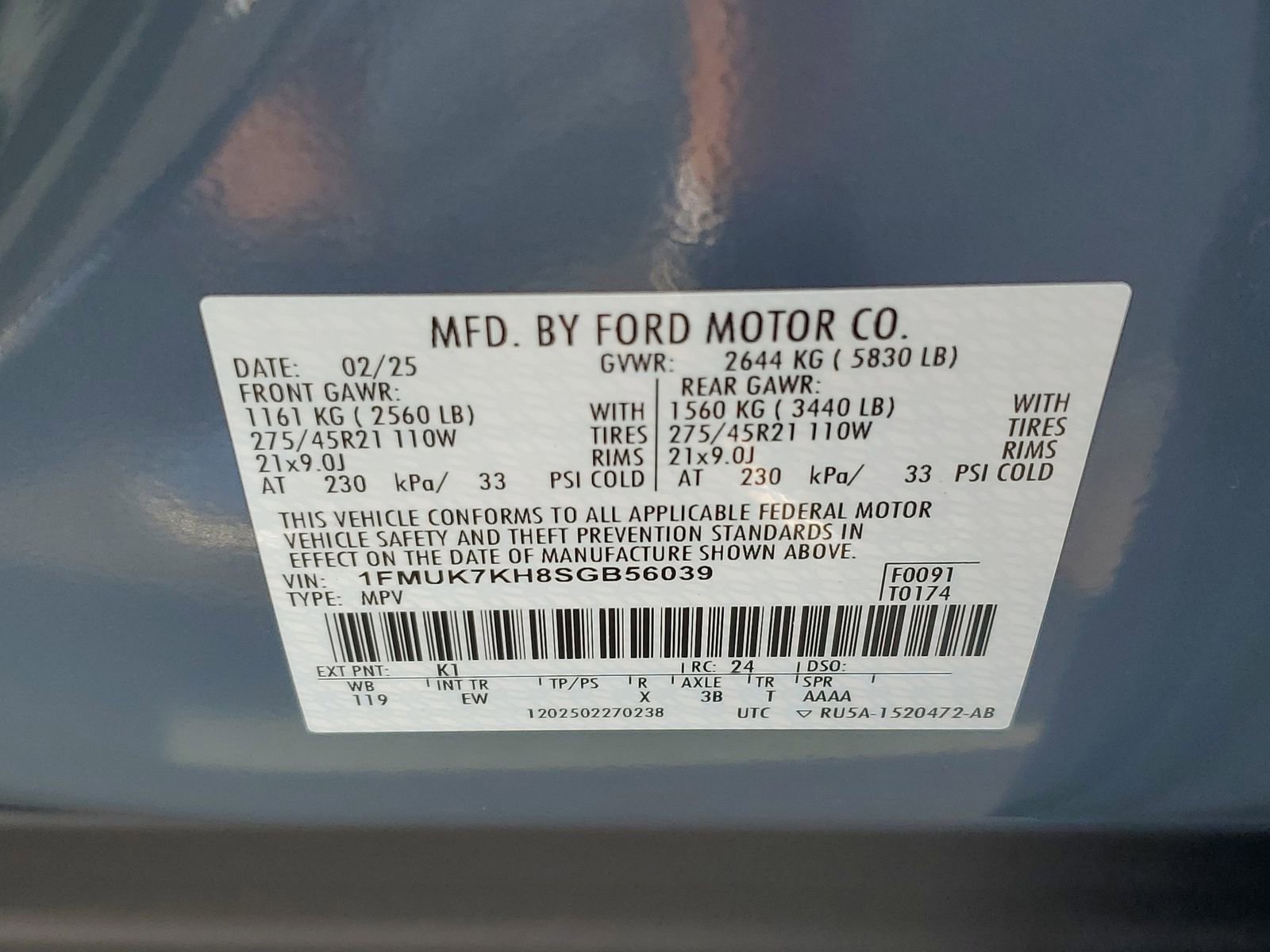 GOLD CERTIFIED, Ford Gold Certified Certified, 10 Speakers, 110V/150W AC Power Outlet, 2nd Row Captain's Chairs w/E-Z Entry & Armrest, 2nd Row Heated Seats, 3.58 Non-Limited Slip Rear Axle, 3rd row seats: bench, 4-Wheel Disc Brakes, ABS brakes, Air Conditioning, Alloy wheels, AM/FM radio: SiriusXM with 360L, Ambient Lighting, Apple CarPlay/Android Auto, Auto High-beam Headlights, Auto-Dimming Interior Rear-View Mirror, Automatic temperature control, Brake assist, Bumpers: body-color, Compass, Delay-off headlights, Driver door bin, Driver vanity mirror, Dual front impact airbags, Dual front side impact airbags, Electronic Stability Control, Emergency communication system: 911 Assist, Equipment Group 300A Standard Package, Exterior Parking Camera Rear, Four wheel independent suspension, Front anti-roll bar, Front Bucket Seats, Front Center Armrest, Front dual zone A/C, Front fog lights, Front reading lights, Fully automatic headlights, Garage door transmitter, Heated door mirrors, Heated front seats, Heated steering wheel, Heated Unique Cloth Captain's Chairs, Illuminated entry, Internet access capable: FordPass Connect 5G, Knee airbag, Leather steering wheel, Low tire pressure warning, Memory Driver's Seat, Navigation System, Occupant sensing airbag, Outside temperature display, Overhead airbag, Overhead console, Panic alarm, Passenger door bin, Passenger vanity mirror, Performance Brakes, Power door mirrors, Power driver seat, Power Liftgate, Power passenger seat, Power steering, Power windows, Power-Folding Sideview Mirrors w/Autofold, Premium Package, Radio: B&O Sound System by Bang & Olufsen, Rain-Sensing Wipers (Front Only), Rear air conditioning, Rear anti-roll bar, Rear reading lights, Rear window defroster, Rear window wiper, Red Painted Perf Front & Rear Brake Calipers, Remote keyless entry, Security system, Speed control, Speed-sensing steering, Speed-Sensitive Wipers, Split folding rear seat, Spoiler, ST-Line Street Pack, Steering wheel mounted audio controls, Tachometer, Telescoping steering wheel, Tilt steering wheel, Traction control, Trip computer, Variably intermittent wipers, Wheels: 20 Ebony-Painted Machined Aluminum, Wheels: 21 Magnetite-Painted Aluminum, Wireless Charging Pad.